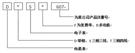 D電能表、T三相四線(S三相三線)、S代表電子表、F代表分時(shí)計(jì)量、607為我公司產(chǎn)品注冊(cè)號(hào)